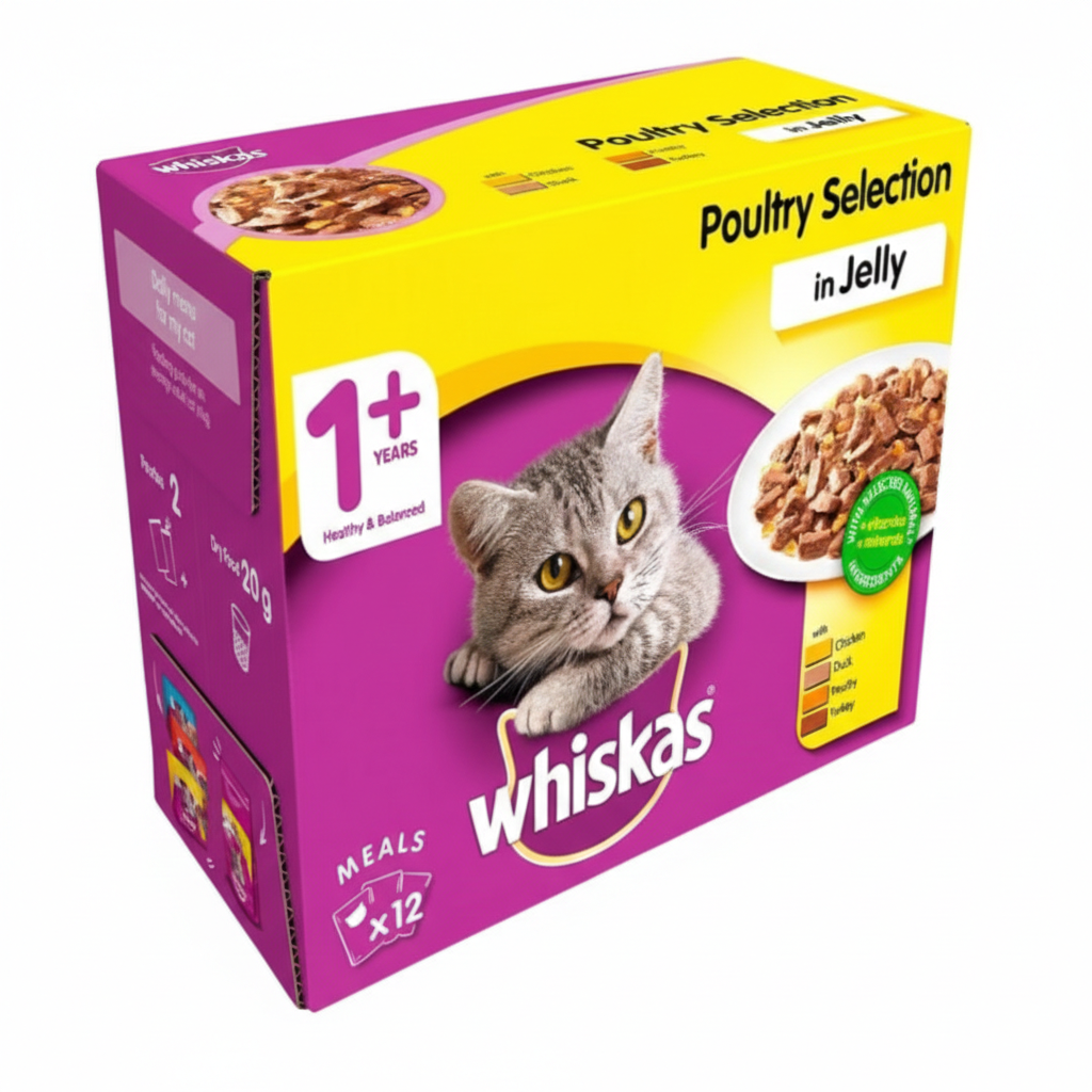 Every 12-pouch box is a treasure trove of flavor. By offering a variety of poultry delights, Whiskas ensures that mealtime never becomes boring. Whether it’s chicken, duck, or turkey, each pouch provides a new culinary journey for your pet, making every bowl a special occasion that they will eagerly anticipate.